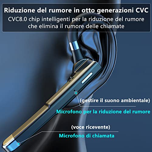 Auricolari Bluetooth con Microfono, Cuffie Bluetooth 5.1, 8 Ore di Riproduzione IPX7 Auricolari Wireless, 180H in Standby, CVC8.0, Cuffie In-Ear per Ufficio/Guida/Affari per Android IOS Window