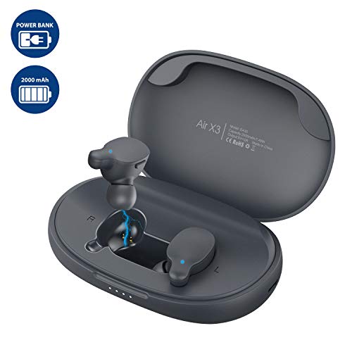 Auricolari Bluetooth 5.0, RIVERSONG Wireless Cuffie Stereo Con Custodia Ricarica 2000mAh MIC 30 Ore Riproduzione per IOS e Android
