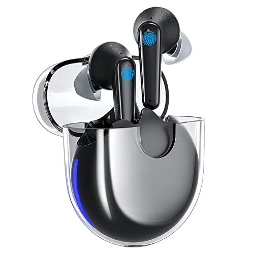 Aspetto unico: gli auricolari bluetooth wireless adottano una bella custodia ricaricabile e trasparente. Una barra blu indicatore di alimentazione offre un design futuristico e affascinante, semplice e durevole, rendendoti più unico.