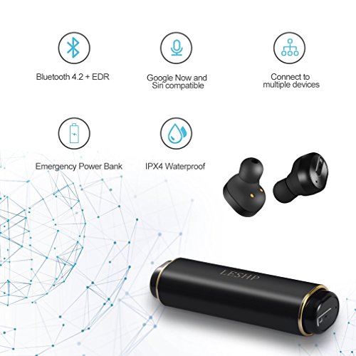 Mini Auricolari Bluetooth Senza Fili 4.2, Sport Auricolari Impermeabili IPX4 Sweatproof con Microfono, Stereo Cancellazione di Riduzione per Dispositivi iPhone, Android e Windows (Neri)