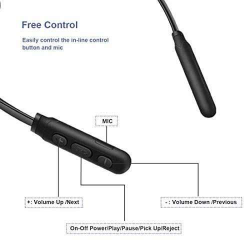 Auricolari Bluetooth V5.0 senza fili YOMYM, Auricolare Bluetooth con archetto da collo con riduzione del rumore attivo, IPX5 Cuffie sportive stereo impermeabili con microfono (nero)