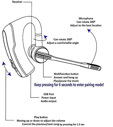 Calzata Confortevole: Ultra leggero (16g), design ultraleggero e confortevole, impugnatura ergonomica in-ear spine e orecchio loop porta la sensazione confortevole e no Heavy anche dopo lungo tempo indossare. La 180 gradi braccio flip-asta permette di regolare l' angolo e montare questo auricolare in destra o sinistra dell' orecchio