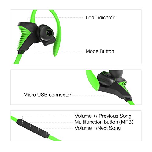 Auricolari Bluetooth, Whitelabel K100 Cuffie Wireless Stereo Sport a Prova di Sudore, Con microfono incorporato per iPhone,Samsung,Tablet,MP3,ecc (Verde)