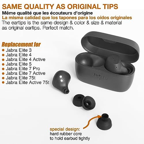 Auricolari compatibili con Jabra Elite 3 & 4 & 4 Active & 5 & 7 Pro & 7 Active & Elite 75t & Elite Active 75t * 6 paia (nero e grigio scuro)