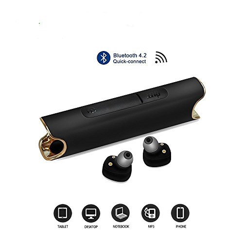 In Ear Auricolari, Cuffie Bluetooth Headset, TKSTAR Mini Wireless Bluetooth 4.2?Cuffie Gemelli separati Stereo Headset Noise Cancelling & sweatproof Cuffie Wireless Stereo Headset con valigetta portatile occhiali da Power Bank per altri smartphone jutws2, nero