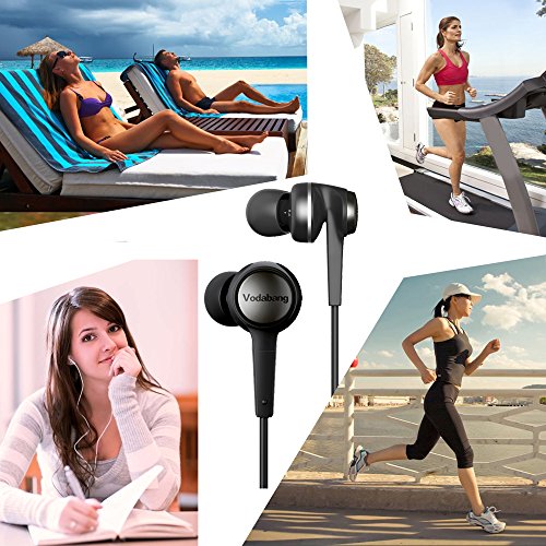 In Ear auricolari cuffie Vodabang auricolari basso pesante suono Stereo 3,5 mm Jack con Mic & telecomando compatibile con IOS Android PC MP3 Player nero