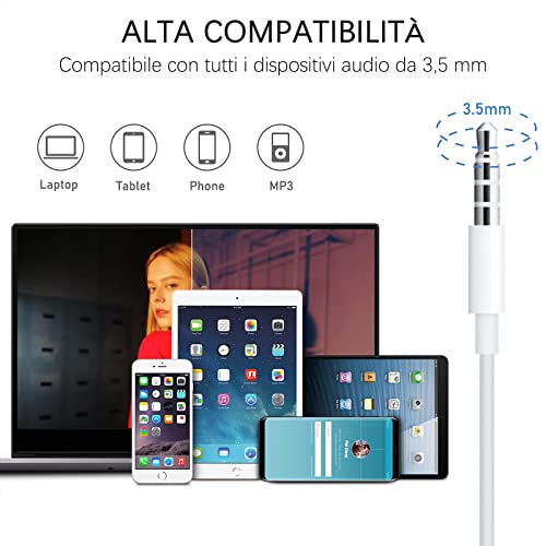 Elevata Compatibilità:Questa cuffie con il filo compatibile con tutti gli smartphone e dispositivi dotati di ingresso audio da 3,5mm