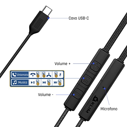 KLIM F1 Auricolari con filo e microfono + Garanzia di 5 anni + Auricolari in ear con cuscinetti in memory foam + Compatibile con Samsung Xiaomi Huawei Apple + USB-C + NOVITÀ 2022