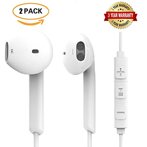 Auricolari, [2 pezzi] Unitee Premium cavo cuffie auricolari in-ear con microfono e volume per iPhone 6 6S Plus 5S 5 C 5 se iPad iPod, Tablet PC e Samsung Smart Phone (bianco)
