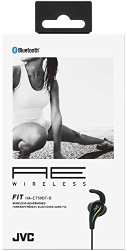 JVC Auricolari in ear AE sport Bluetooth con gancio mobile (Pivot Motion), a prova di sudore (IPX5), compatibile con app AE Run & Music, Nero