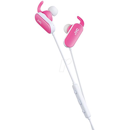 JVC Auricolari in Ear Sport Bluetooth con Gancio Mobile, a Prova di Spruzzi (IPX4), Auricolari di Tipo Aperto e Auricolari Standard Inclusi (S/M/L), con Microfono e Telecomando a 3 Pulsanti, Compatibile con Iphone/Blackberry/Android, a Prova di Spruzzi (IPX4), 4,5 Ore di Autonomia, Rosa