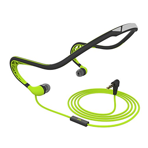 Auricolari sportive con microfono, collarino per correre, auricolari con jack da 3.55 mm a prova di sudore, cancellazione del rumore cuffie leggere per androidi OS computer PC portatili verde