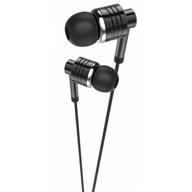 Auricolare stereo in hear con microfono. Sound stereo. Bassi profondi. Tasto per rispondere alle chiamate e gestire la riproduzione musicale. Rivestimento metallico. Jack 3,5 mm. Lunghezza cavo 1,2 m. Comode e leggere. Colore nero.