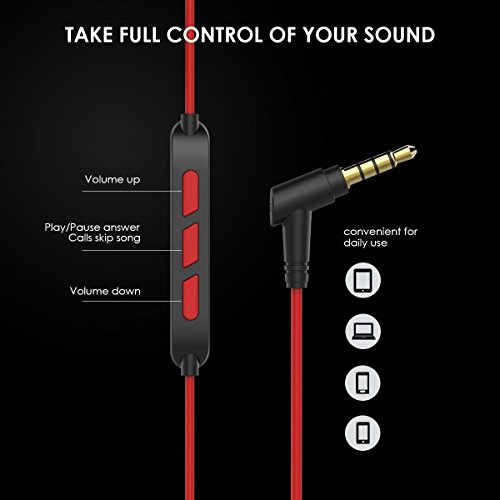 Auricolari, Uiisii Auricolari Con Microfono Dual Dynamic Drivers Strong Bass-driven Suono Stereo Isolamento Acustico ad Alta Definizione (Rosso)