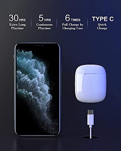 【Ultra Lunga Attendenza e controllo tattile】Gli auricolari wireless possono fornire 4-5 ore di tempo di riproduzione con una singola ricarica e 24 ore aggiuntivi di tempo di riproduzione è disponibile nella mini custodia di ricarica portatile. Musica riproduzione/pause, Siri abilitano, rispondere/terminare chiamate o altre funzioni toccando facilmente le cuffie.