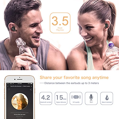 ★ ACCESSO SENZA FILI SENZA WIRELESS PER VIA BLUETOOTH 4.2 ★: Accoppiare due auricolari senza fili wireless come Apple AirPods, rendendolo quasi il miglior design ergonomico della cuffia stereo Bluetooth sul mercato. Bluetooth 4.2 con tecnologia avanzata di decodifica audio consente collegamenti wireless con smartphone e altri dispositivi Bluetooth e conferisce a queste cuffie stereo ultra-piccole senza fili la qualità del suono senza pari.