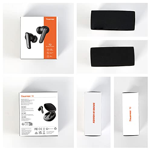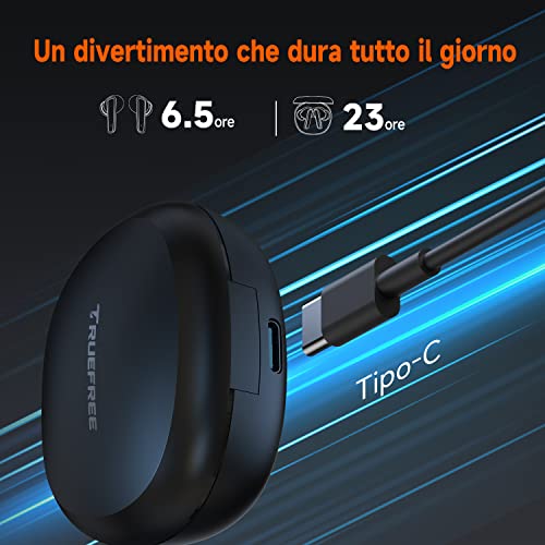 Auricolari wireless Truefree T2 Bluetooth 5.3 con microfono integrato, cancellazione del rumore, suono stereo coinvolgente, 23 ore di riproduzione e auricolari multipli (S/M/L)