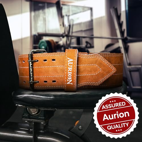 AURION - Cintura per sollevamento pesi in vera pelle, per uomini e donne, resistente, comoda e regolabile con fibbia, supporto stabilizzante per sollevamento pesi (medio, marrone)