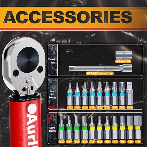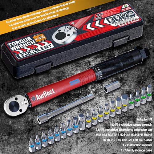Aurlloct Chiave Dinamometrica 1/4" 2-24 Nm, Bici, Auto e Moto, Precisione ±3% Chiavi Dinamometriche Rosso