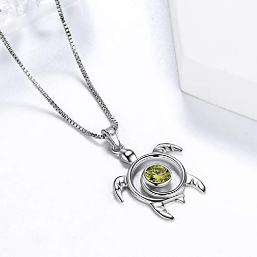 Aurora DP0172 - Collana con ciondolo a forma di tartaruga, in argento Sterling 925, con pietra portafortuna e zirconia cubica e placcato Argento, colore: August-peridot, cod. DP0172A-EU