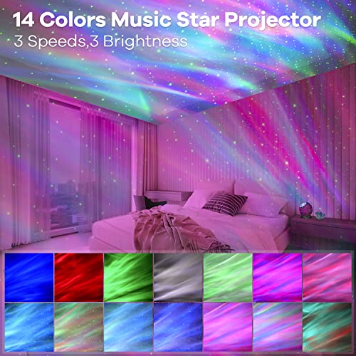 Aurora Proiettore Stelle, Luce Notturna Bambini Proiettore Cielo Stellato, 14 Colori Lampada Proiettore Stelle Soffitto, Proiettore Galassia con 360° Rotazione, 19 Rumore Bianco, Regali Decorazioni