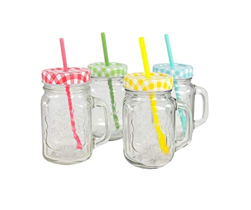 Aurora Store.it 12 Bicchieri brocca Boccale con Cannuccia Coperchio 100 ml Barattolo Maniglia Vetro frullato Cocktail Vari Colori bomboniera