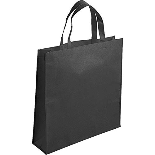 Aurora Store 10 BUSTE SHOPPERS IN TNT BORSE SPESA 45x45 cm con soffietto 14cm BUSTINE RIUTILIZZABILI SHOPPER 80 g/m2 termosaldato con manici lunghi per la Spesa Riutilizzabile (Nero)