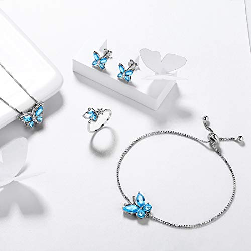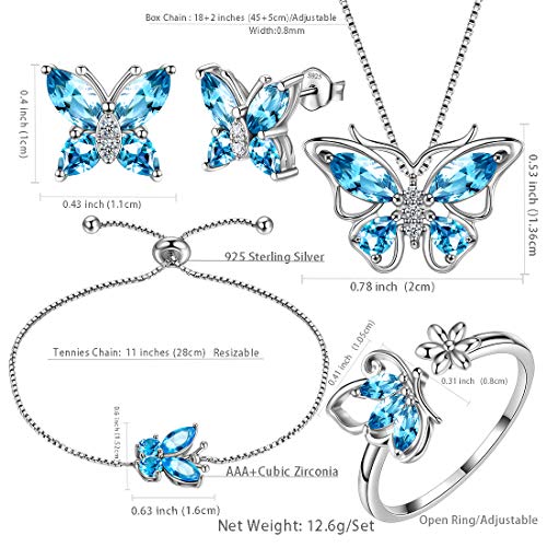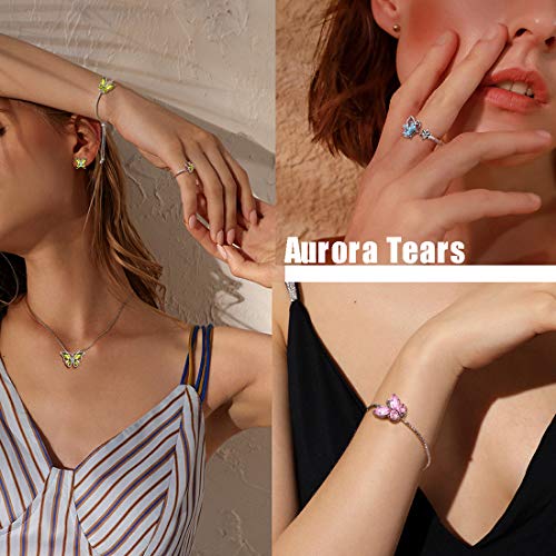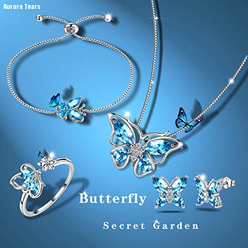 Aurora Tears, Collana e Orecchini in Argento Sterling 925, con Ciondolo a Forma di Farfalla, Ideale Come Regalo per Donne e Ragazze e Set Collana/Orecchini/Anelli/bracciali