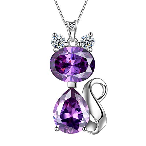 Aurora Tears Set di collane/Orecchini a Forma di Gatto in Argento Sterling 925 con Ciondolo a Forma di Simpatici Animali, con Pietra Portafortuna per Donne e Ragazze e Collana