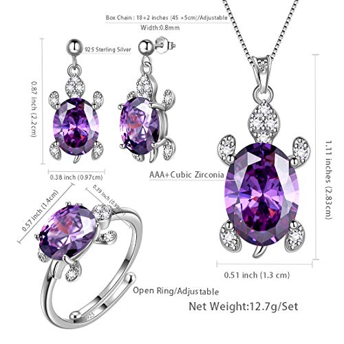Aurora Tears Parure di Collana e Orecchini a Forma di Tartaruga, in Argento Sterling 925, con Pietra Birthstone Animals Regalo per Donne e Ragazze e Orecchini