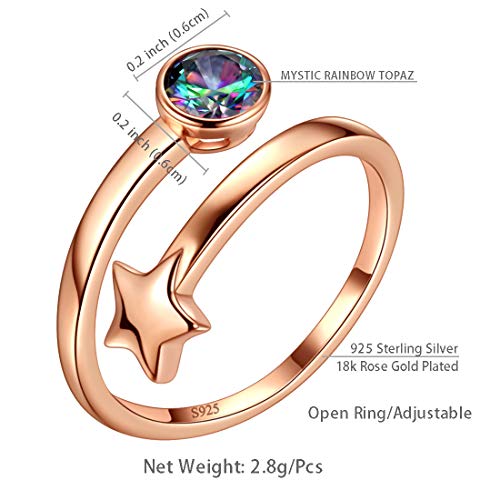Aurora Tears Stella Regolabile Anelli 925 Argento Sterling Mystic Rainbow Topaz Oro/Oro Rosa Placcato Anello Aperto Gioielli per le Donne DR0111 e Placcato argento base, regolabile