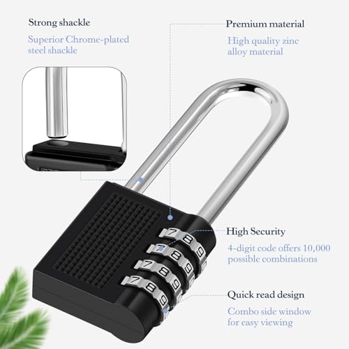 Aurora & Tithonus Lucchetto Armadietto,Lucchetto Combinazione a 4 Cifre,Lucchetto Lungo,Serratura con Codice Numerico in Lega di Zinco Robusta per Armadietti di Scuola, Garage,Recinzioni,Palestra,Nero