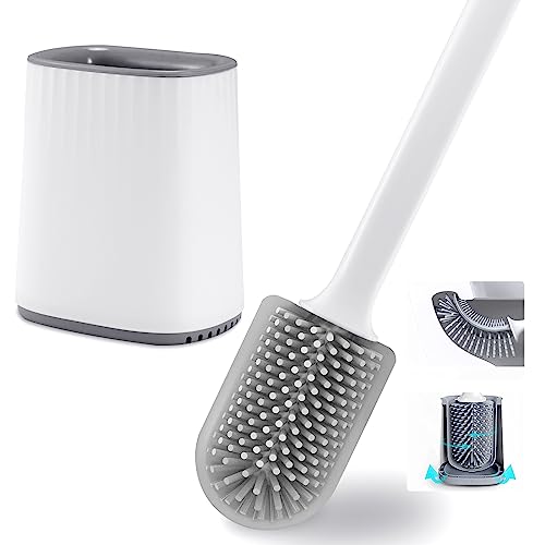 【Pulizia profonda a 360° di tutti i vicoli ciechi】: lo scopino per WC è realizzato in materiale siliconico resistente, lo spazzolino non si consuma mai. Lo scopino piatto e morbido può entrare negli angoli e nelle fessure. Gli scopini e i supporti per WC sono progettati per una pulizia profonda su sporgenze e altri luoghi difficili da raggiungere e non danneggia i servizi igienici.