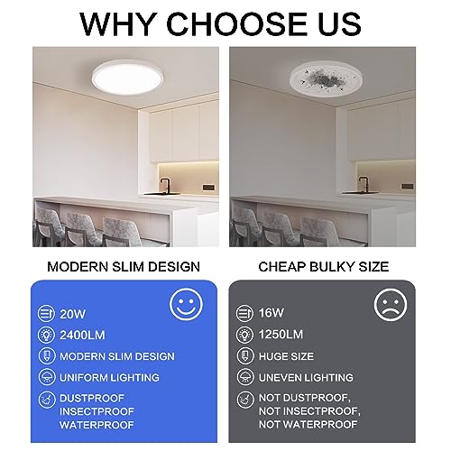【Facile da installare】 Lo spessore della plafoniera è di soli 2,5 cm, il design sottile si adatta perfettamente al vostro soffitto, risparmiando spazio, mentre il design completamente sigillato impedisce alle zanzare di entrare, portandovi un'illuminazione pulita e luminosa. Stile semplice e moderno, fasi di installazione semplificate, solo 3 passaggi per installare con successo (si prega di interrompere l'alimentazione prima dell'installazione per evitare scosse elettriche).