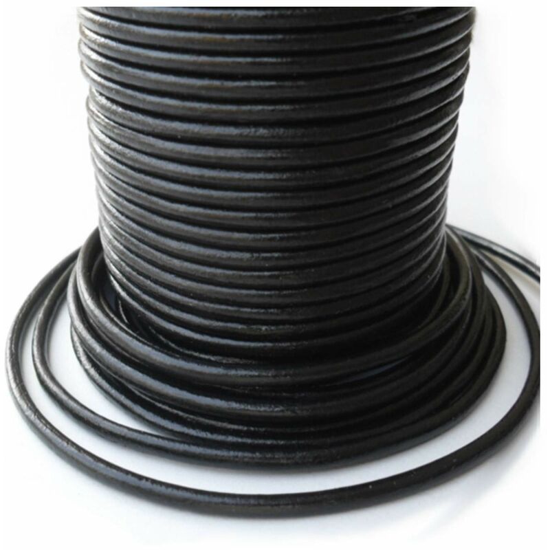 Lunghezza: 50 meters su rotolo. Diametro: ca. 2 mm Rotondo Colore: Nero - Cordoncino di cuoio rotonda in pelle di mucca - privo di coloranti Azo, piombo, eu-conform colorazione - Caratteristiche: flessibile, durevole, superficie liscia e resistenza allo strappo: medio a alto - adatta ad esempio per creare gioielli, realizzare medievali, altri artigianato