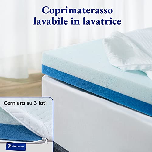 Aurorome 2 Strati Topper Materasso Matrimoniale 160x190, 4cm Memory Foam con Gel Rinfrescante + 3cm Memory Foam Rigido per Supporto Aggiornato, Coprimaterasso con Rivestimento Rimovibile e Lavabile