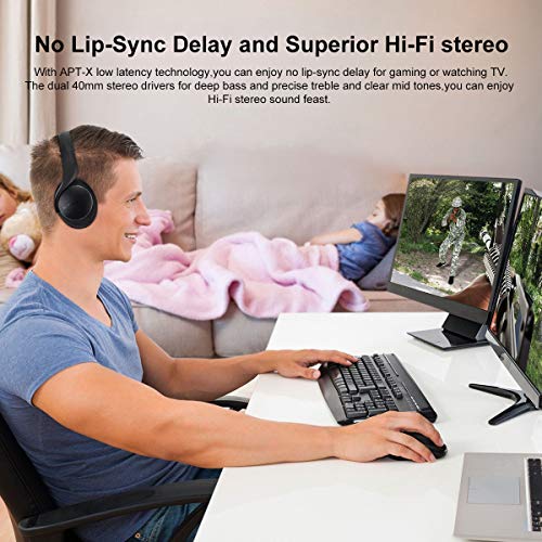 Nessun ritardo audio per TV o PC: trasmissione ultra rapida con APT-X, bassa latenza Ausdom AH3 cuffie wireless Bluetooth, supporta minimo ritardo audio da 32 a 40 ms (orecchio umano) per maggiore scorrevolezza musica e un'eccellente esperienza audio senza ritardi (non occorre trasmettitore separato se il televisore non è Bluetooth).
