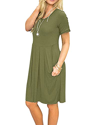 AUSELILY Abito Casual da Donna a Pieghe a Manica Corta con Scollo a V e Lunghezza al Ginocchio(Army Green,L)