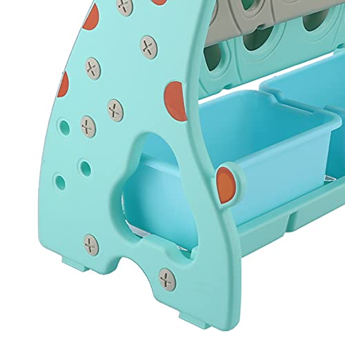 Ausla Libreria per bambini, scaffale, libreria, mobile portaoggetti per giocattoli, 4 scomparti e 2 cestini, 80 x 36 x 65 cm, colore: verde
