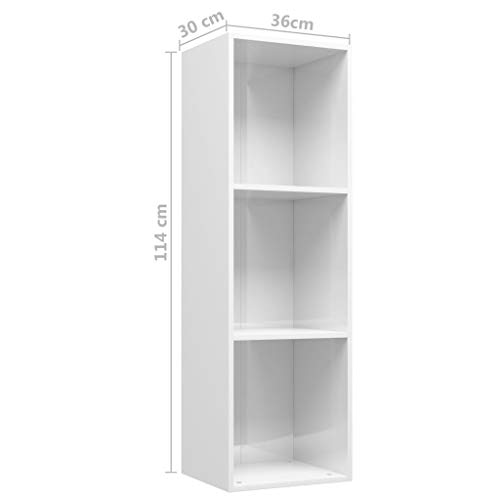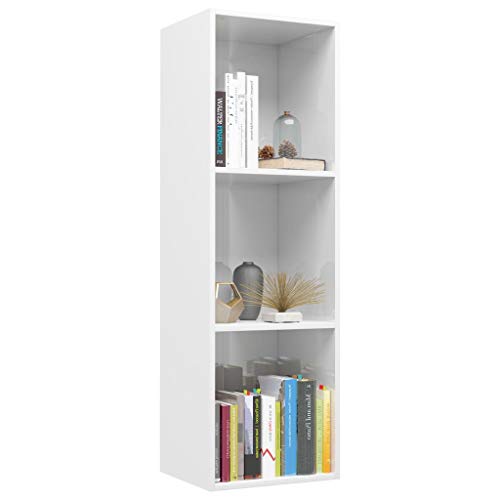 Ausla - Mobiletto per libri, librerie, librerie in truciolato, con 3 scomparti, colore: bianco lucido, per soggiorno, 36 x 30 x 114 cm