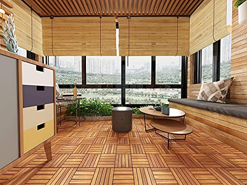 Ausla 10 pz Piastrelle in Legno di Acacia per Pavimento Giardino terrazza o Balcone 30 x 30 cm Listelli Pavimentazione Acacia Design Verticale Deck per pavimentazione di Esterni