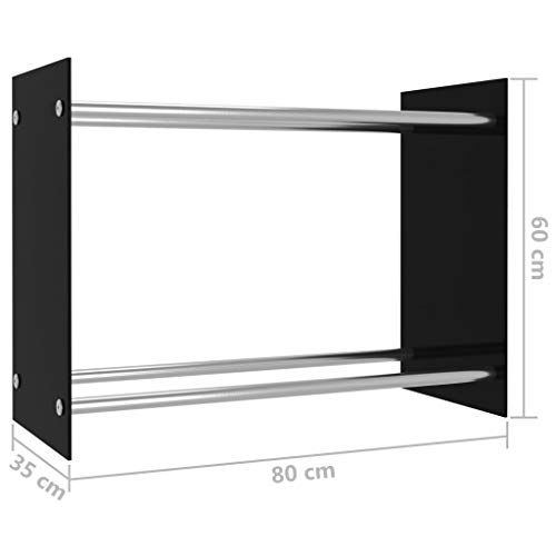 Ausla Porta legna da ardere 80 x 35 x 60 cm Portalegna per camino in Vetro,Contenitore Grande Cestini portalegna per cortile, patio o terrazza,Nero