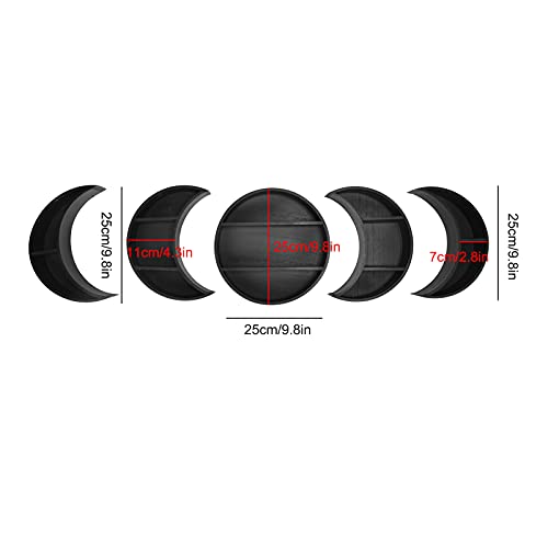 Ausla Scaffali da Parete con Fasi Lunari, 5 Pezzi Scaffale da Parete per Appendere a Parete con Fasi Lunari Cornice Decorativa Mensole Galleggianti per Camera da Letto, Soggiorno, Bagno, Nero