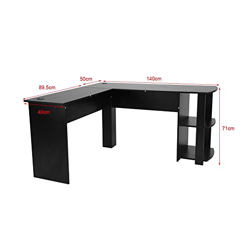 Ausla Scrivania a Forma di L, Scrivania da Ufficio Scrivania da Gioco Scrivania per Computer Portatile per studio, per casa, ufficio, con libreria aperta,140 x 140 x 74 cm(Nero)