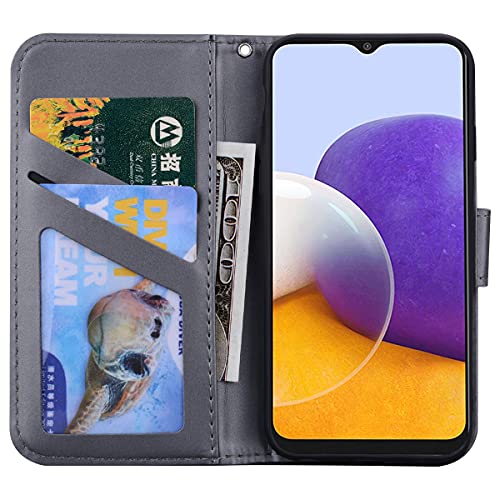 Auslbin Cover Samsung Galaxy A22 5G, Flip Cover Cartoon art Custodia Protettiva Caso Libro Pelle PU con Portafoglio,Funzione Supporto,Chiusura Magnetica-Grigio Orso