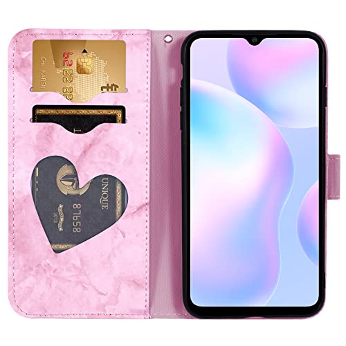 Auslbin Cover per Xiaomi Redmi 9A / 9AT / 9i (6.53 Pollice) Custodia Libro Protettiva in PU Pelle Portafoglio Cuore Modello per Xiaomi Redmi 9A / 9AT / 9i (Rosa)