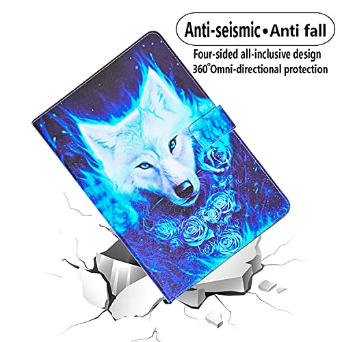 Auslbin Custodia iPad Mini 5 (2019)/Mini 4/Mini 1/Mini 2/Mini 3 Case PU Pelle Libro Protettiva con Funzione Stand e Auto Sveglia/Sonno Cover per iPad Mini 5/4/3/2/1 Tablet,Lupo Blu