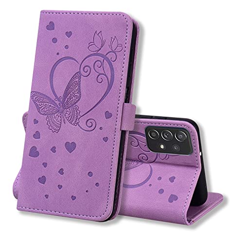 Auslbin Custodia per Samsung Galaxy A53 5G in Pelle PU con Farfalla Rilievo Style Magnetico Protettiva con Funzione Stand Cover Samsung Galaxy A53 5G,Viola