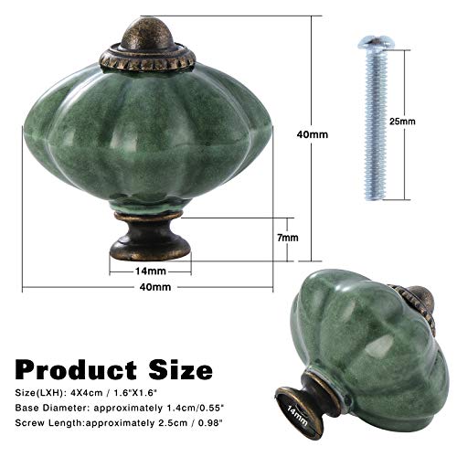 Aussel Manopole per armadi in ceramica 6 pezzi, pomelli per cassetti vintage, maniglie per armadi da cucina a zucca antica, manopole per porte per mobili rotonde, verde