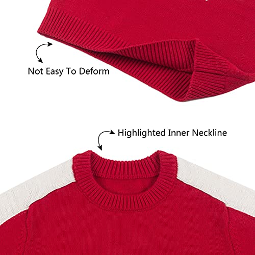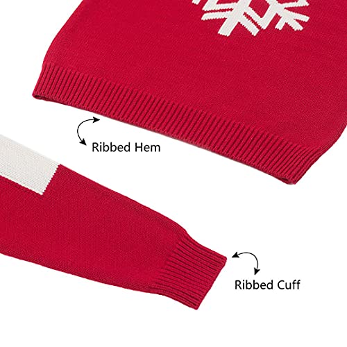 AUSTINCIAGA Pull-Over - Felpa a maglia rossa per bambini, in cotone, scollo rotondo, a maniche lunghe, Natale, festa di Capodanno, motivo: fiocchi di neve, rosso, 8 anni